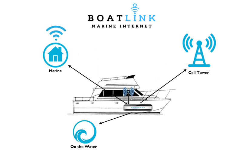 Optional BoatLink range extenders or boosters can amplify the signal coming from on-shore networks to your boat. We can boost signals by vastly expanding your coverage range to extend this range to 5+ miles!